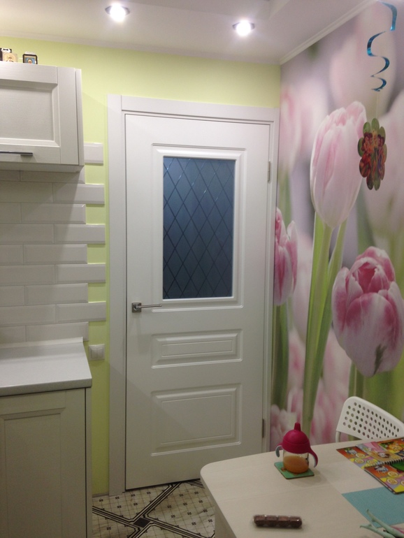 Любопытно))У меня муж даже на проект кухни взглянул одним глазом,ему вообще все равно)Главное не черный)И да, в 9 кв фотообои будут неуместны.