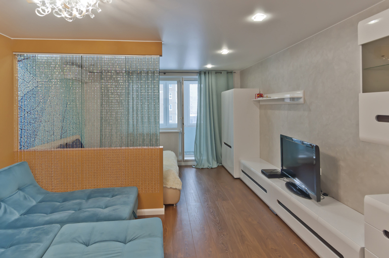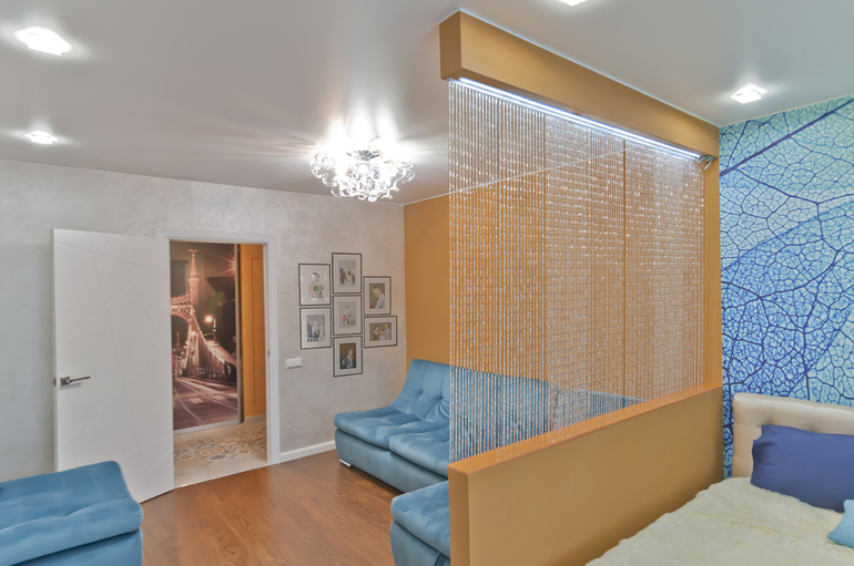 Скажите,из чего шторка на перегородке в зале,это стеклянные нити,или что? И где их берут? У нас похожая комната,по метрам даже чуть больше и зонировать будем так же,вот и думаем над перегородкой