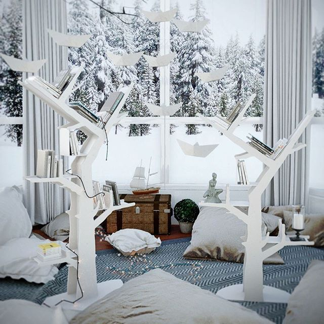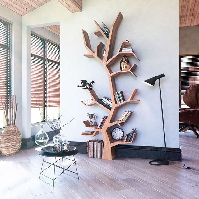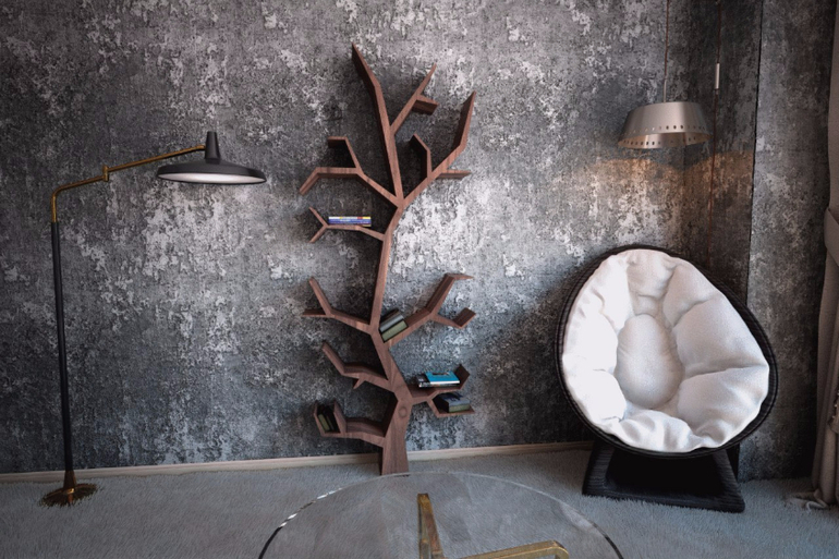 Книжные полки в форме деревьев. Латбук придумал идею создать нестандартные библиотеки, заменив на обычные привычные полки, шкафы и стеллажи. Объединив разных креативных дизайнеров.