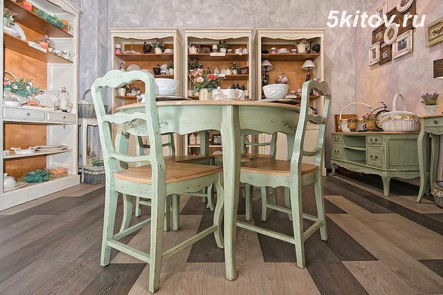 Если кухня как на картинке я бы коричневый стол/стулья выбрала, под столешницу - зеленого и так уже много.