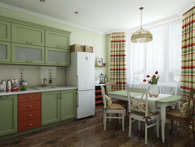 Интерьерное решение кухниВот вся в раздумьях... стены у нас просто светлые однотон, полы коричневые. То ли в зелёный цвет то ли в коричневом варианте, прям не знаю
