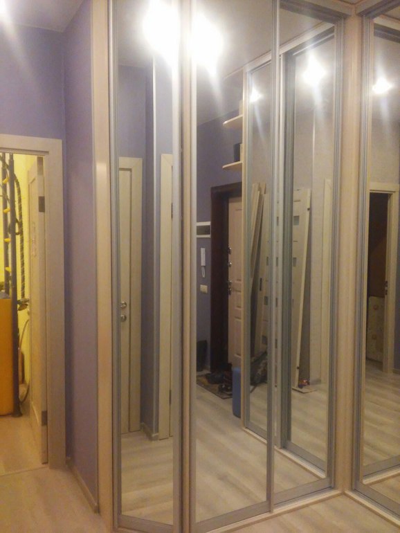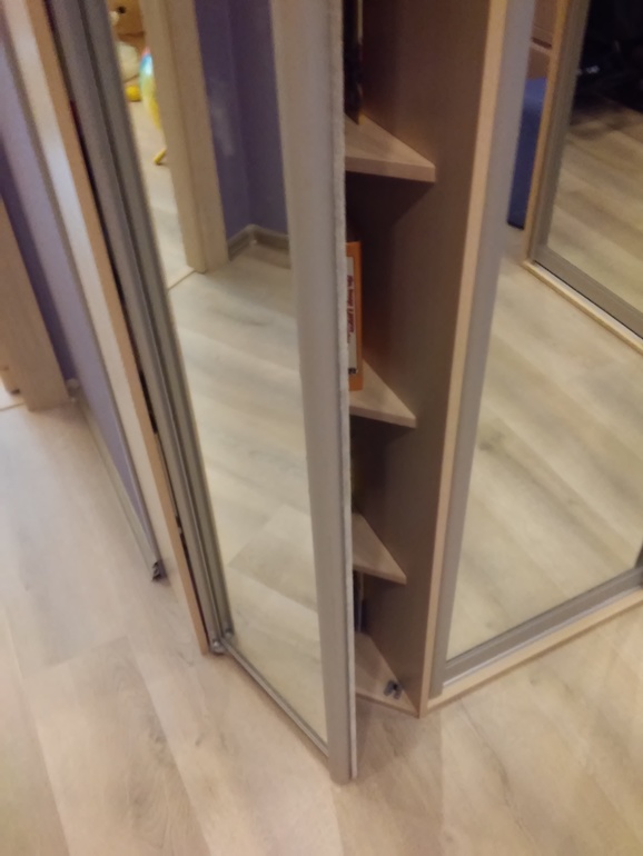 И ещё вопрос из любопытства. А как технически боковая дверка шкафа- купе открывается в коридоре?
