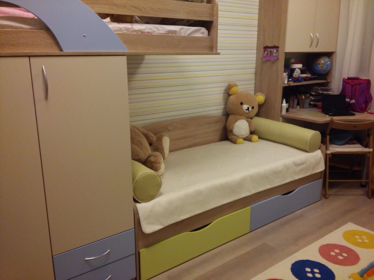 Мы младшую будем летом переселять ( в 1.6). Бортик купим только. Сейчас кровать нижняя как диван используется для посиделок.