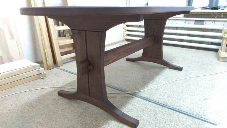 Столешницу попросили сделать овальной. Вот что получилось: размер столешницы 2000*900мм, толщина 40 мм, массив ясеня.