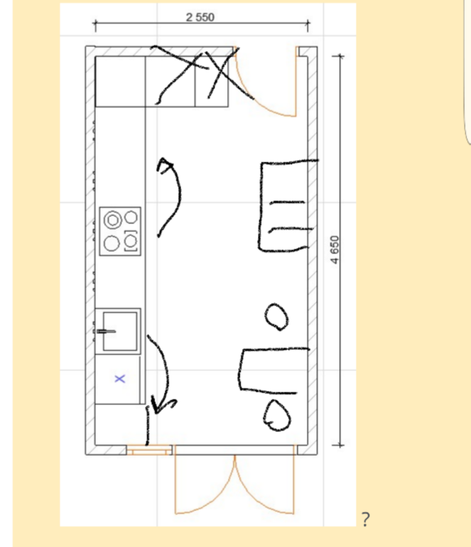 вот что то такого около окон и рядом 3 шкава под потолок с микровалновкой и кофеапаратом. Раковину сместить в угол а газовую плиту ближе к духовке. Но вопрос вы как думаете барный стол там уместен?? Спасибо большое