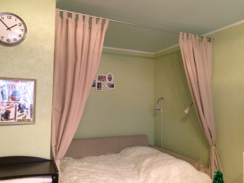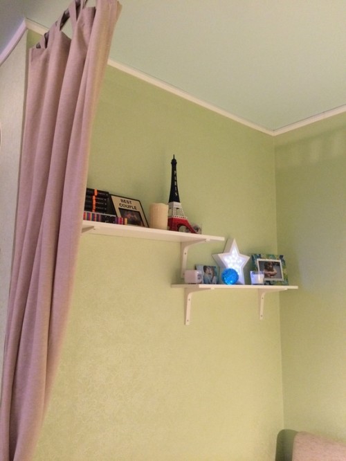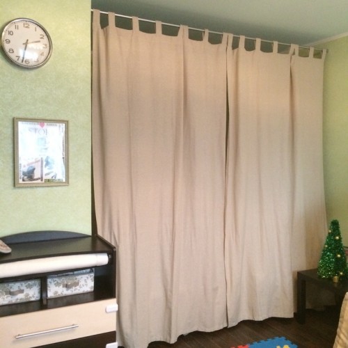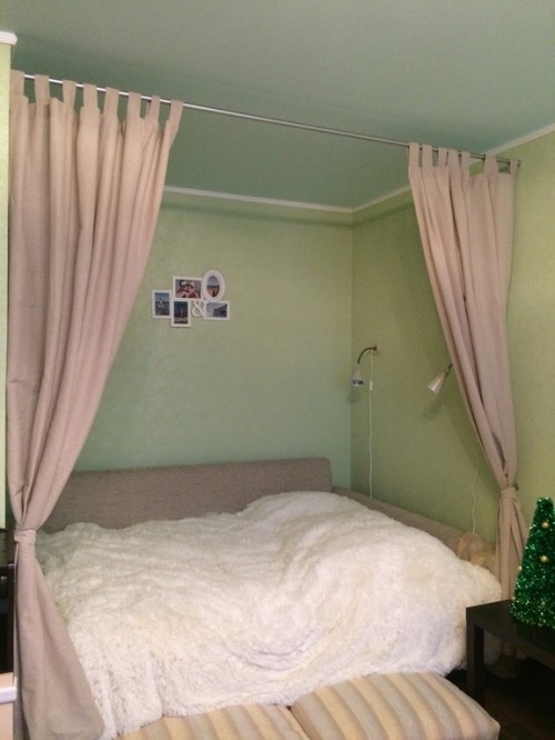Тем, кто не читал, напоминаю: мы живём в однушке с ребенком. В комнате есть ниша. Всю нишу занимает диван, на котором я сплю. Там было очень пусто и неуютно. Я предлагала сделать там полочки, светильники и завесить всю нишу шторами, чтобы можно было закрыться и представить, что у меня своя комната))
