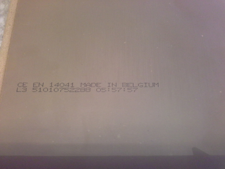 Я заказывала здесь, на ББ у Лены, в магазине на образце он непонятный, у этого ламината они двусторонние, сзади, примерно такой же, точно не вспомню, его уже уложили, обрезки выкинули. Привезли полностью проштампованный, тоже переживала по поводу подделки, у меня осталось фото от бельгийского, мы его тоже рассматривали, на харо было практически так же, проштамповано на каждой доске.