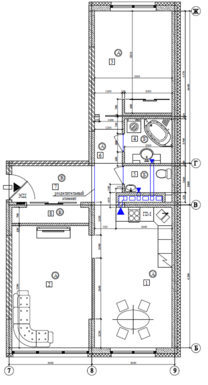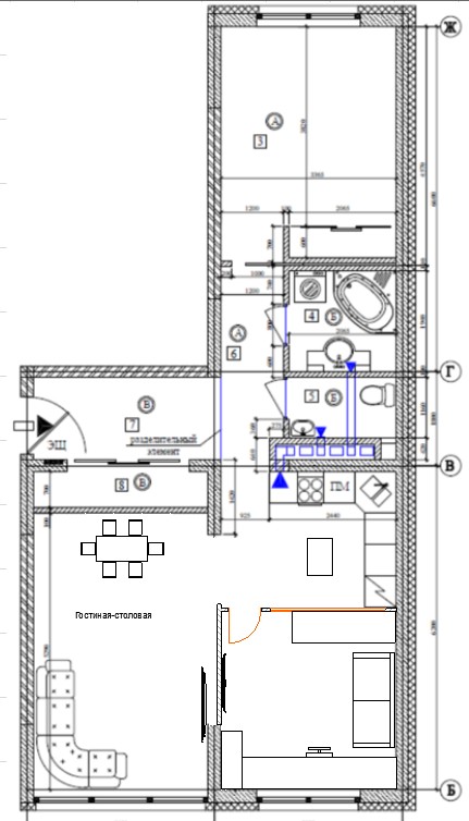 на счет ванной и прочее, у вас в любом случае должны быть обозначены границы мокрых зон.