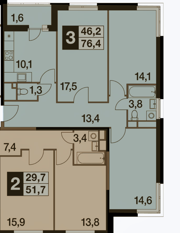 Что меня смущает- кухня всего 10 кв и ванна 3,8 (при условии, что туда надо впихнуть стиралку и в идеале сушилку)