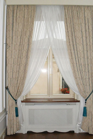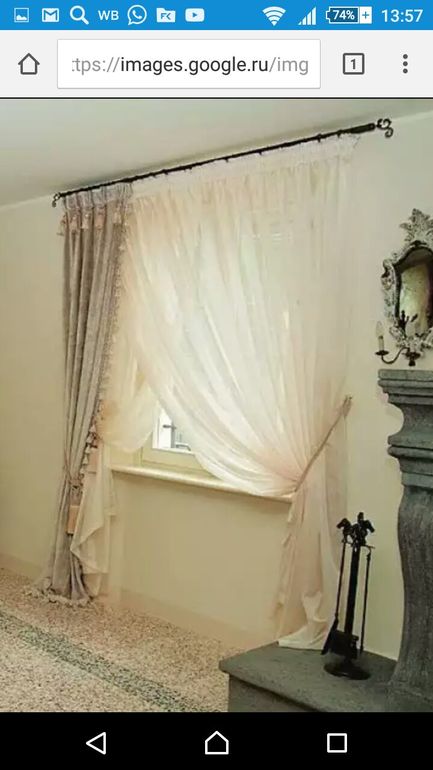 вот так можно поступить с тюлем я имею ввиду только модель ,но не цвет . По цвету можно подобрать любой из цветов присутствующих на обоях