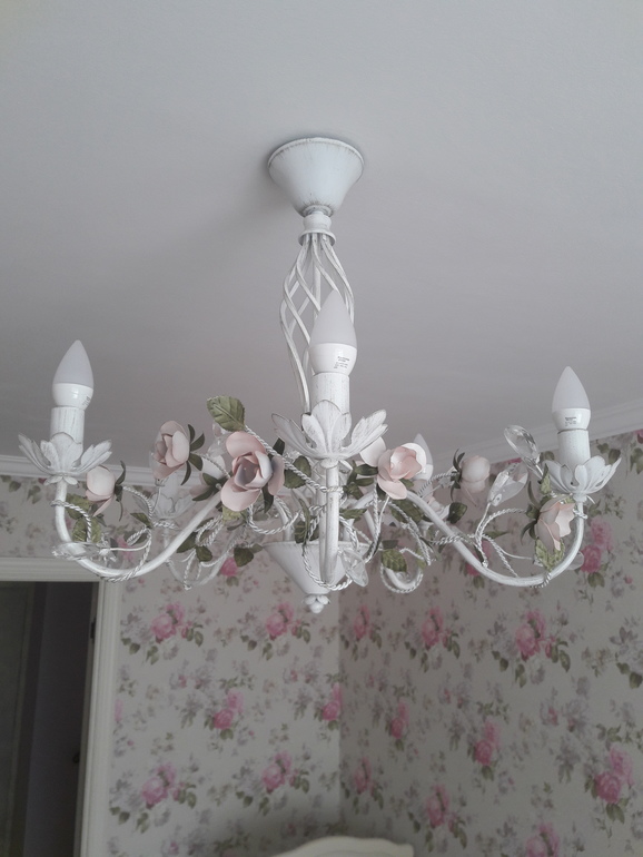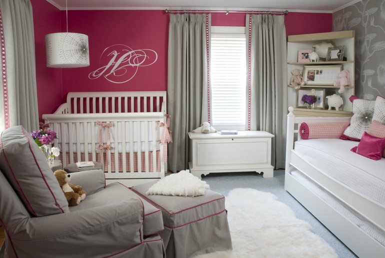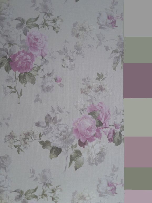Очень пестрые обои, поэтому однотонные. Я бы выбрала белые или в цвет зеленых листочков на обоях, только именно приглушенный зеленый, не ядовитый. Розового не хочется сюда, итак много, тем более еще ведь 100% добавятся какие-нить розовые девачковые аксы :)