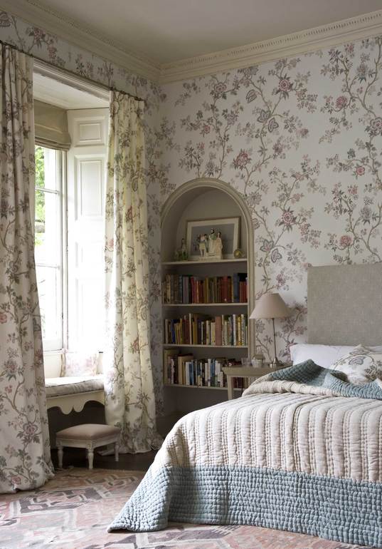 Если вам кажутся скучными однотонные шторы, то можно поиграть формой, не обязательно банальные подхваты, а например австрийская штора или в стиле прованс такой прямой ламбрекен. И кстати ваша детская больше в прованс тяготеет, я бы что-то в таком духе мутила. И в качестве рисунка к провансу еще хороша будет полоска или клетка, в вашем случае не яркие только. И да, в провансе вполне себе можно сочетать цветочные шторы и обои, но они как правило из одной коллекции, сложно это...