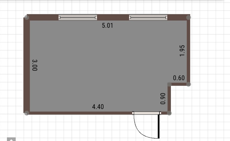 - два окна в пол - параметры: высота 2.1 м на ширину 1.2 м; между ними расстояние 1 м.