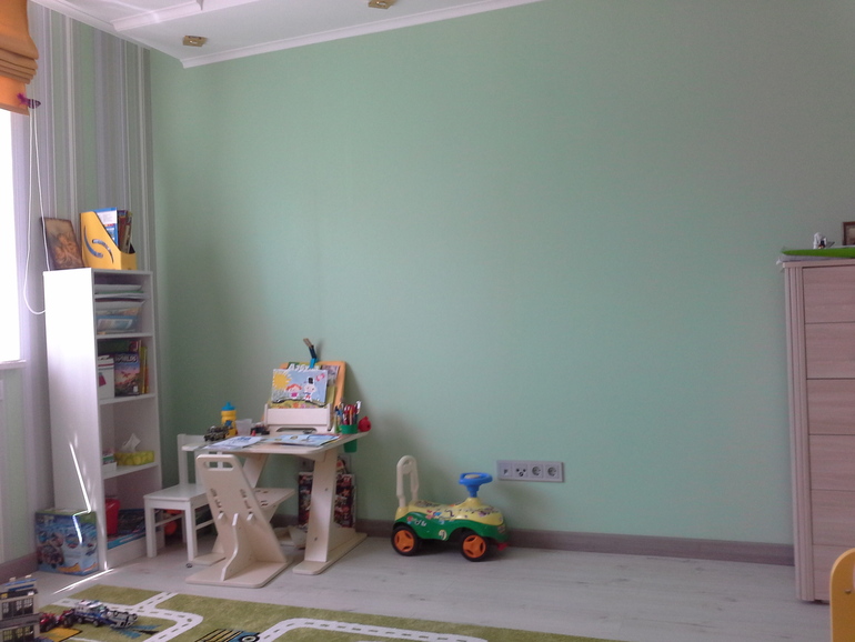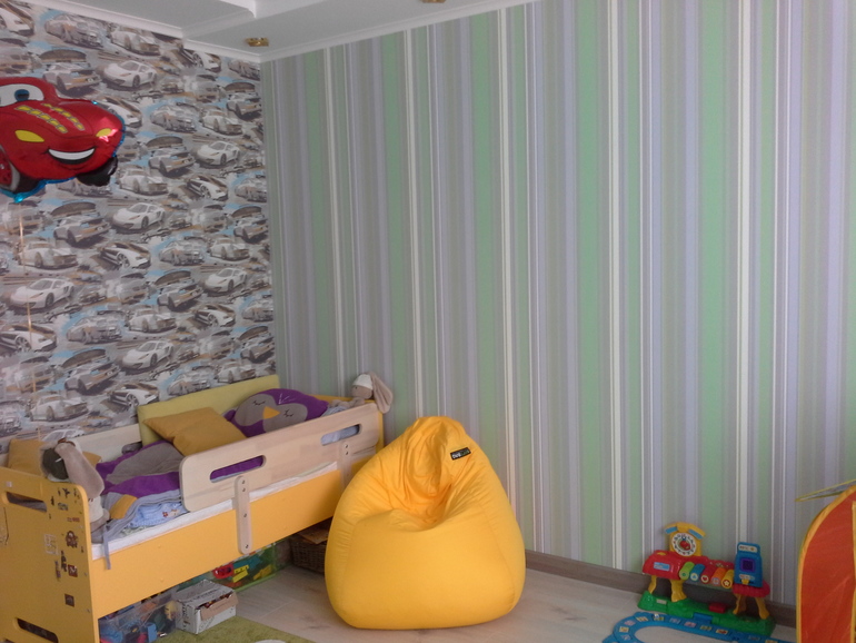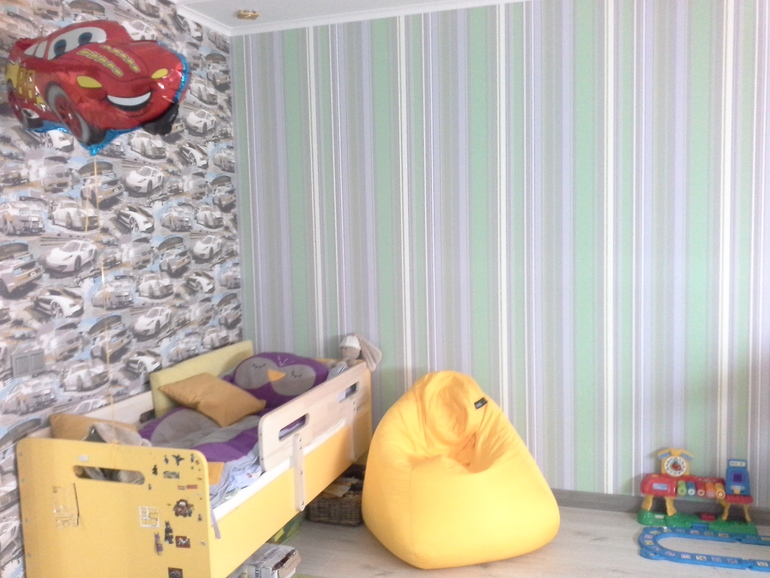 Вот такая детская получилась у нас, осталось прикупить люстру и диванчик. Бюджетно, но на мой взгляд симпатично и солнечно.