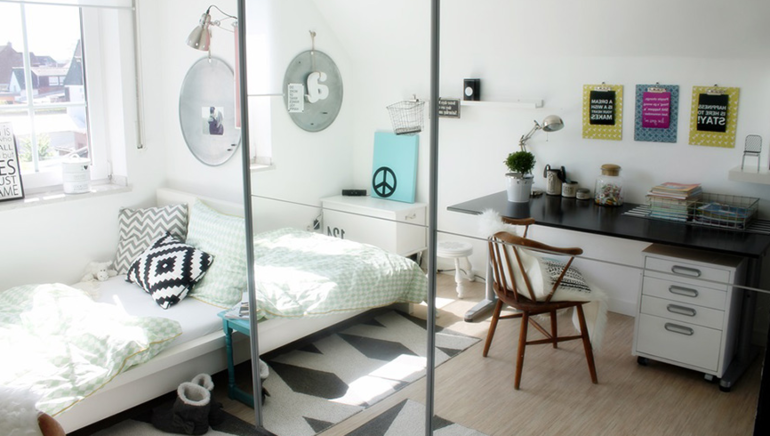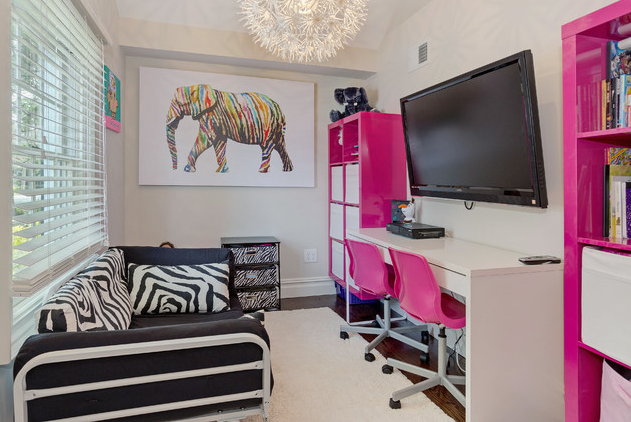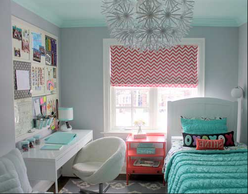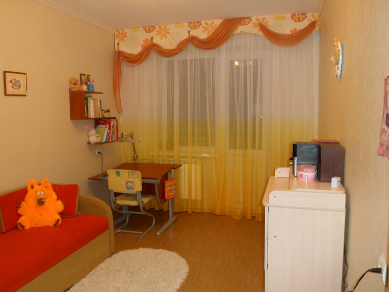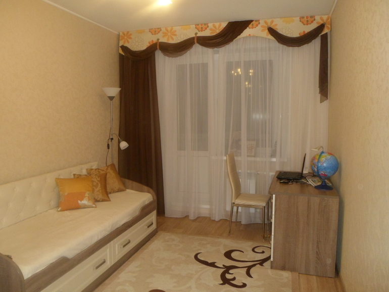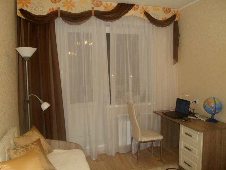 А потом мы купили другую квартиру, сделали в комнате у дочки ремонт и настал черед выбора штор. Так получилось, что размеры комнаты практически совпали и поэтому когда я пришла в салон, то дизайнер предложила мне оставить это бандо, просто иначе его обыграть.