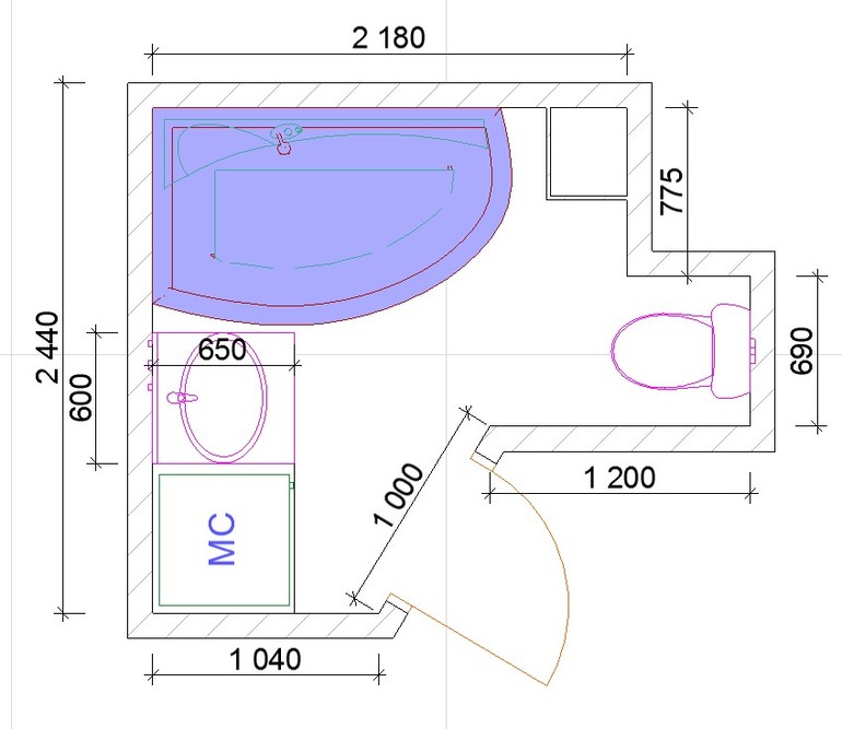 Там у меня ошибка стена 2180 это до труб, а так стена вместе с трубами 2440 ,трубы закрываем гипсокартоном 25-30см