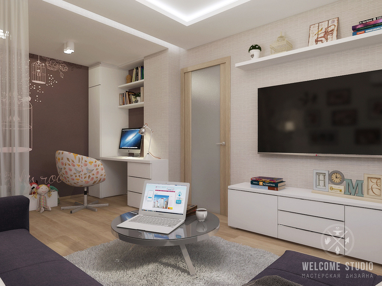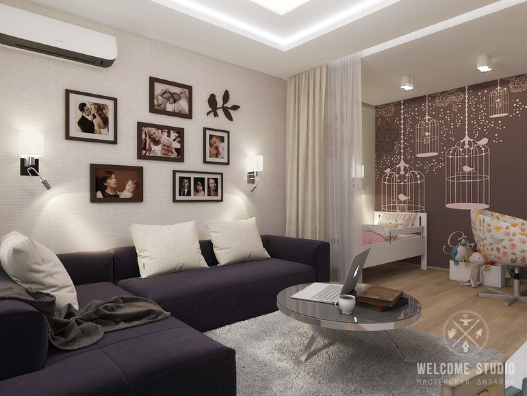 Интерьерное решение детской комнатыВсем здравствуйте!нужна ваша помощь.Уже всю голову сломала.Нужно из комнаты сделать и детскую,и взрослую зону!