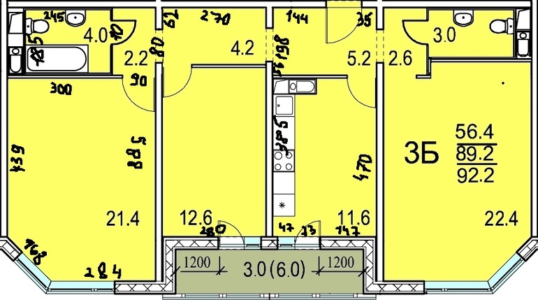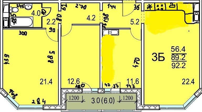 Кухня на месте сан узла,когда у всех по стояку санузел....Ваще не по феншую! И три нет окна! А четыре,вам же хватает всем места.