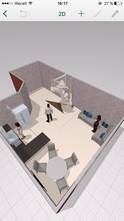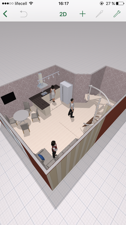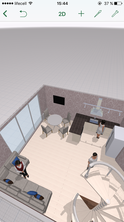 Очень симпатично, надо продолжить шкафы до холодильника и поставить барные стулья на острове. И вообще хорошо! А ты сама рисова? В какой программе не подскажешь?