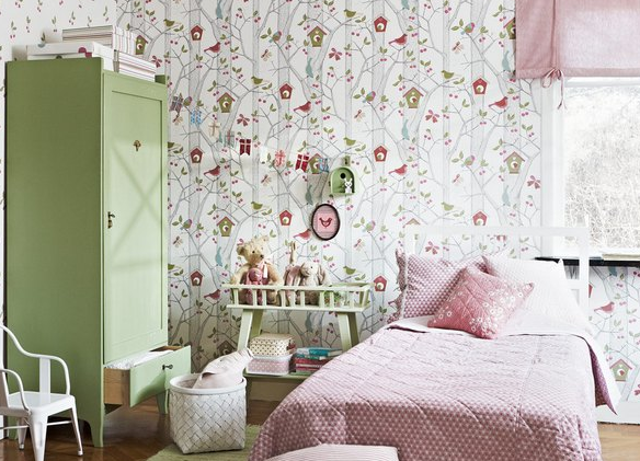 Вот вариант с розовым, но не таким навязчивым, как на показанных вами обоях