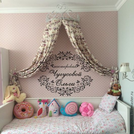 Интерьерное решение детской комнатыДобрый день! Дочка 5 лет, давно просит балдахин над кроватью... Мне понравился такой вариант карниза. У нас так же расставлена мебель как на этом фото. Девчонки, может кто нибудь знает где такой заказать подешевле, а так то на них цены не маленькие....Спасибо !вске