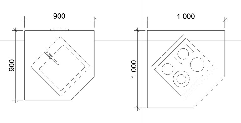 Я на даче так плиту поставила, там не варка, а просто настольная плита на 4 комфорки... я оплевалась 2 года мучилась, в этом году кухню переделали как бы на другую сторону и без углов вообще. Я счастлива. А угловая раковина у меня сейчас в квартире... терпимо, но не удобно.