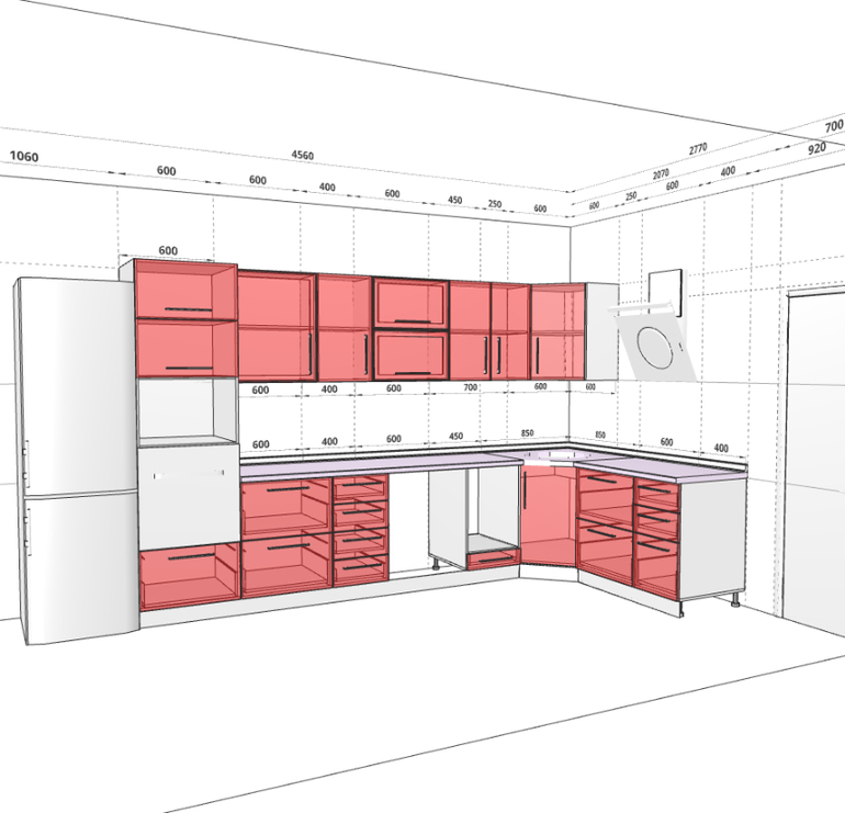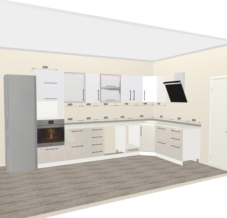И маленькая поправка - пенал будет той же высоты, что и верхние шкафчики.