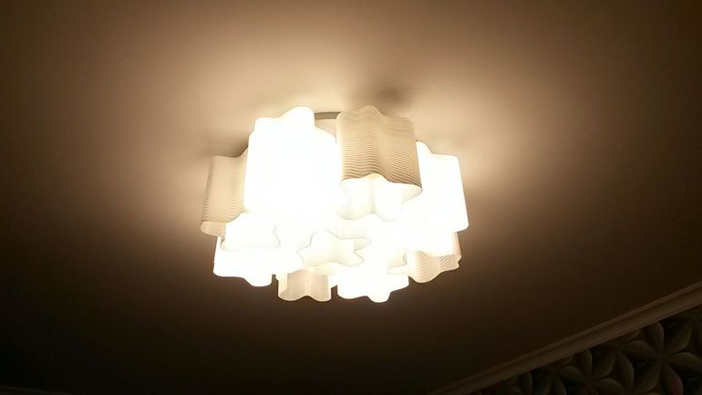 Интерьерное решение гостинойКак вы думаете, уместна ли эта люстра в современной гостиной? И какие светильники по периметру потолка подойдут?