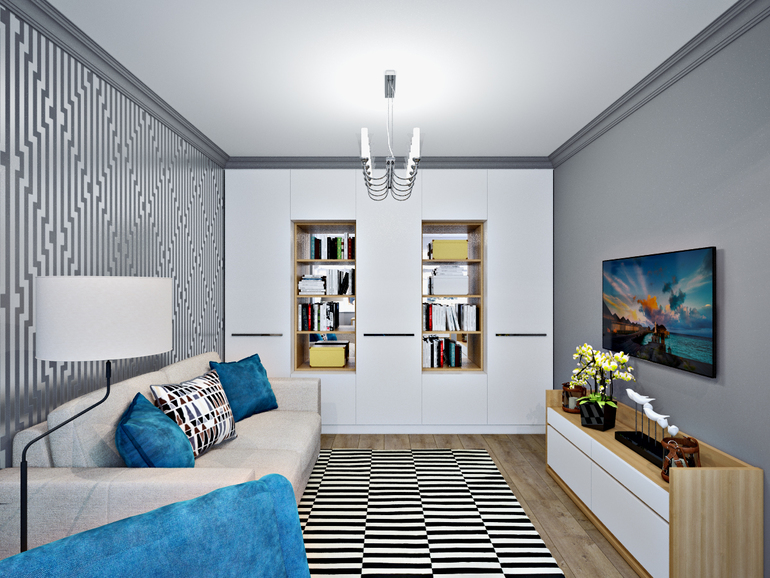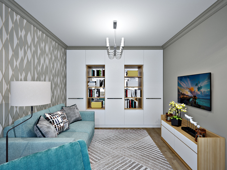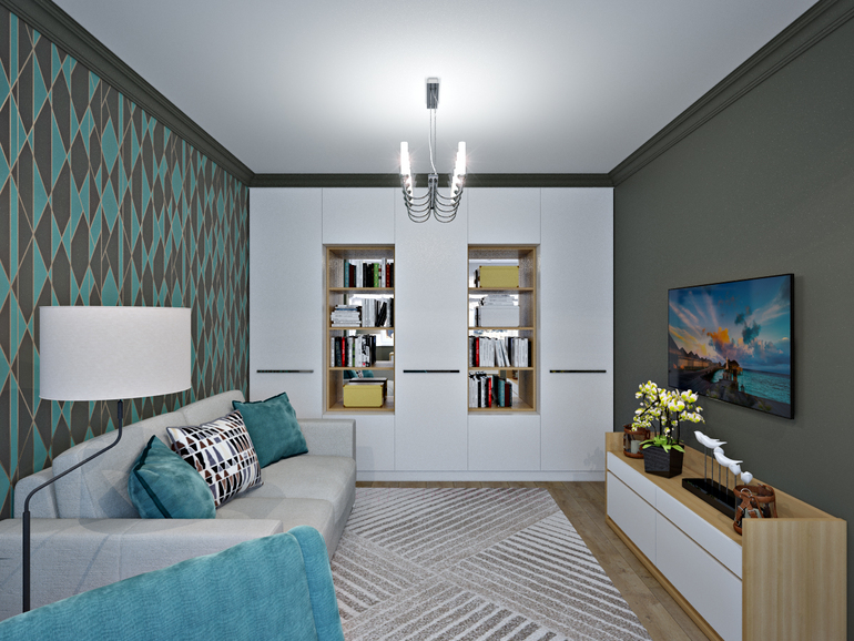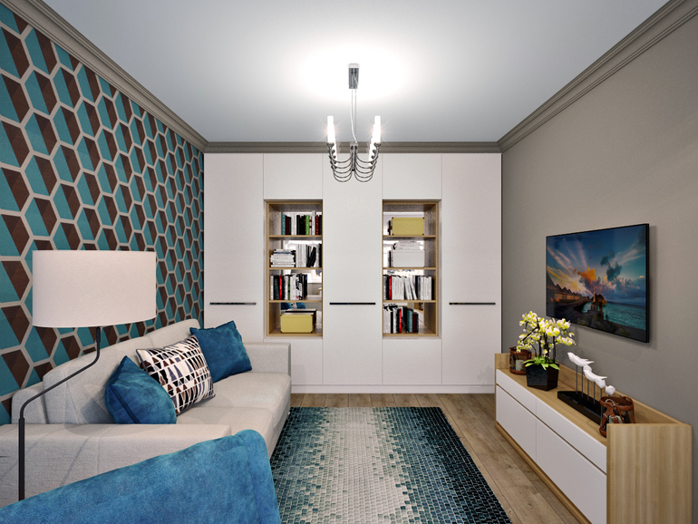 Первый вариант привносит в комнату эффект какого-то футуризма что-ли. Такие "технические соты". Очень по-современному и наоборот даже хорошо, что ярко. По крайней мере - рисунок однородный по всей стене, нет каких-то вычурных ярких пятен. А при выключенном телевизоре - тем более будет к месту этот пестрый рисунок. Остальные варианты - особенно с серыми рисунками, на мой взгляд, делают комнату скучными.