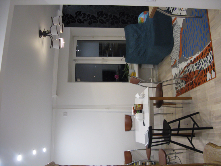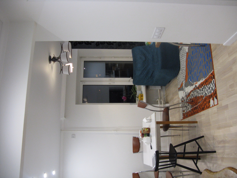 3) если вносить минимальные изменения, то я бы диван сделала бы, вероятно, угловым и поставила бы "лицом к кухонной зоне". (тут, конечно, есть "минус" - видны двери в с/узлы. Это можно было бы исправить, но сейчас, метаться поздно....). Телевизор я бы перевесила бы на стену ванной комнаты (как, кстати, на вашем фото, если я его правильно поняла). Обеденный стол автоматически отодвигается от кухонной зоны готовки к центру помещения.