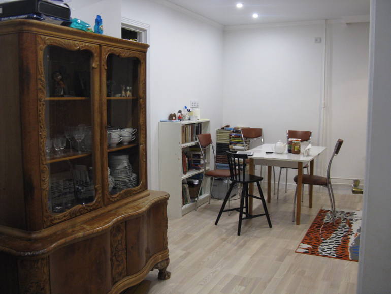 2) кухня на вашем "компьютерном" плане, конечно, тесная. Там и человеку места нет, не то что её функционально использовать.... Думаю, Вы и так это видите. В реалии у вас же так стол не стоит? ))