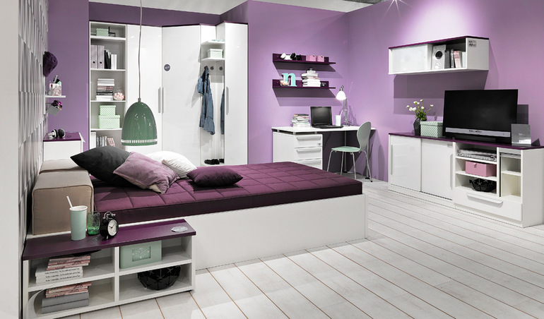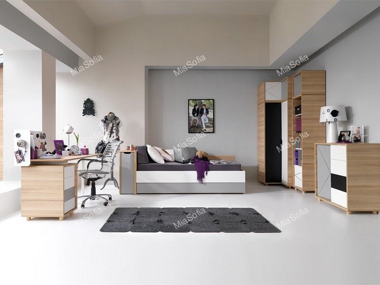 Но так...холодно что ли, по-подростковому. Мне хотелось бы добавить к такой мебели какого-то романтизма и нежности девчачей. А как? Мне кажется люстру с цветами сюда уже не повесишь, да и люстра вообще меня меньше всего волнует, если честно, она приедет в магазин с люстрами и у нее глаза разбегутся, так что тут я направлю в нужное русло.