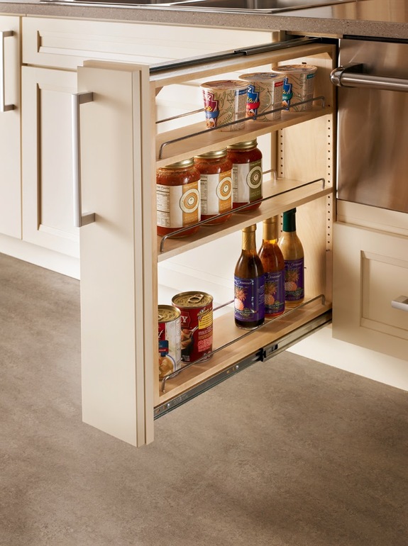 В принципе, мне все нравится. Верхние шкафчики будут под потолок. Вопрос возникает только со шкафами по 57,5 см. Получаются очень широкие дверцы, а что придумать, еще не знаю. На фирме предлагают вместо двух сделать три распашных шкафа. Не знаю, думаю, что мельтешить будет. Холодильник у окна, 2 м. Далее бутылочница 25 см(т.к. исходила из расположения газового счетчика, который спрячется над вытяжкой). Бутылочница вот такая примерно будет