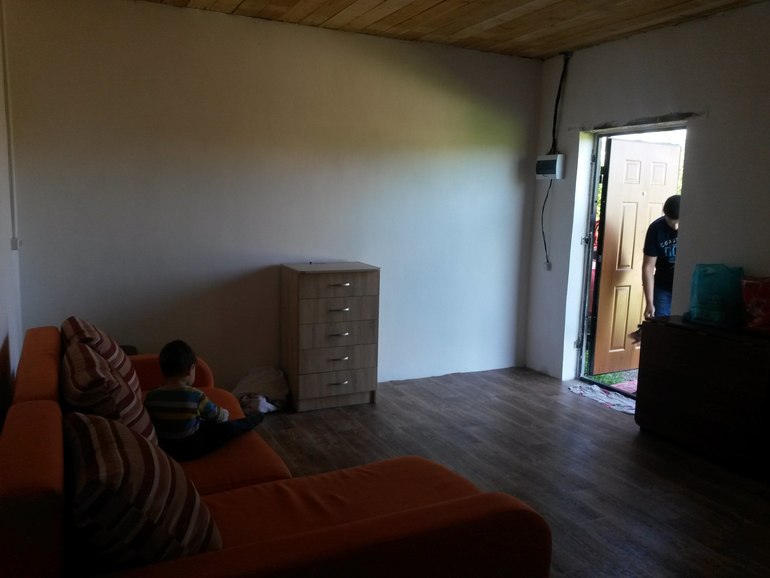 Добрый день! Имеется площадь для временного проживания в теплое время года (в дальнейшем планируется использование в качестве летней кухни) 4/5м. Помогите, пожалуйста, грамотно расставить мебель, чтобы было уютно и удобно. В ткань какого цвета лучше перетянуть диван? Справа от кухонного гарнитура уже стоит холодильник, на окне -жалюзи, стол складной. Извините за качество фото. Стены и кухня белые. Что еще добавить из мебели и декора?