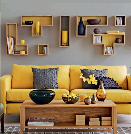 В Вашем случае в целом всю мебель как и стены лучше делать белыми. Если хочется интересной динамики, то шкаф можно сделать зеркальным, а стеллаж горчичным