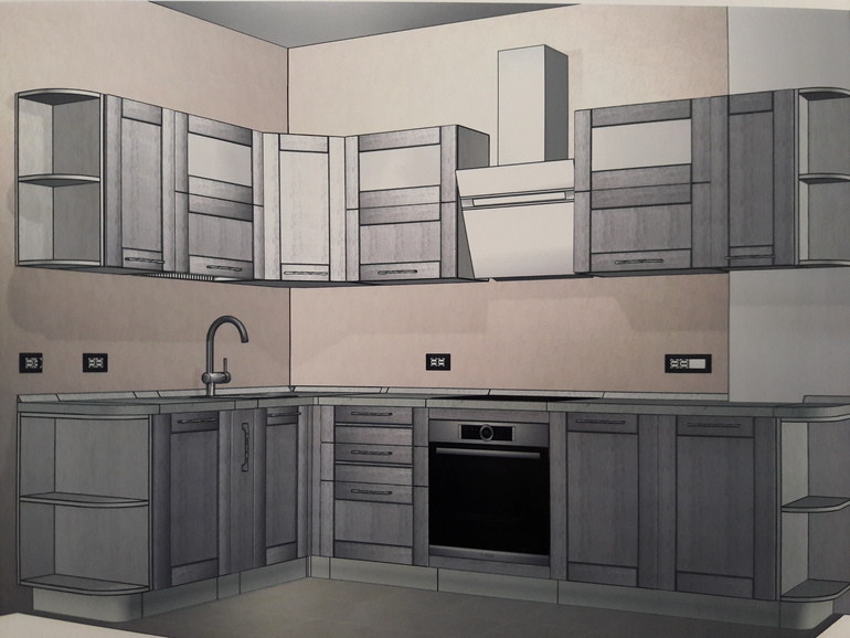 На открытые полки я планирую поставить цветы , кашпо, сверху точно. А вообще обыграли так, потому что если просто закруглить - мне не понравилось на дизайн проекте, а делать острые углы - сами понимаете , грубо будет смотреться.. Насчет пыли - да разве это проблема ? пыль я каждый день и так вытираю, потому что готовлю каждый день , и уборка тоже каждый день ) спасибо за совет, я подумаю, но в целом уже вроде определились, я вам сейчас нашу кухню тут покажу - какая сейчас у нас, подобная, и по функционалу подходила, просто сейчас переезжаем в новую квартиру, и заказываем новую кухню..