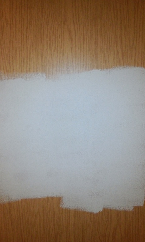 От обычной губки для мытья посуды отрезанэете половину, обмакиваете в краску и промакивающими движениями нанесите. Например на стену шкафа, которая стоит к стене. Сделайте 10см квадрат, дайте высохнуть и потом посмотрите как будет покрытие.