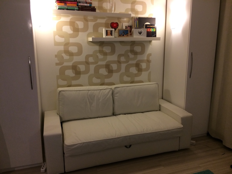 Спим каждый день. У обоих моделей выбранных хороший пружинный матрас, разница будет только в подлокотниках, в небольшом отличии по дизайну в общем. Кровать точно нет(