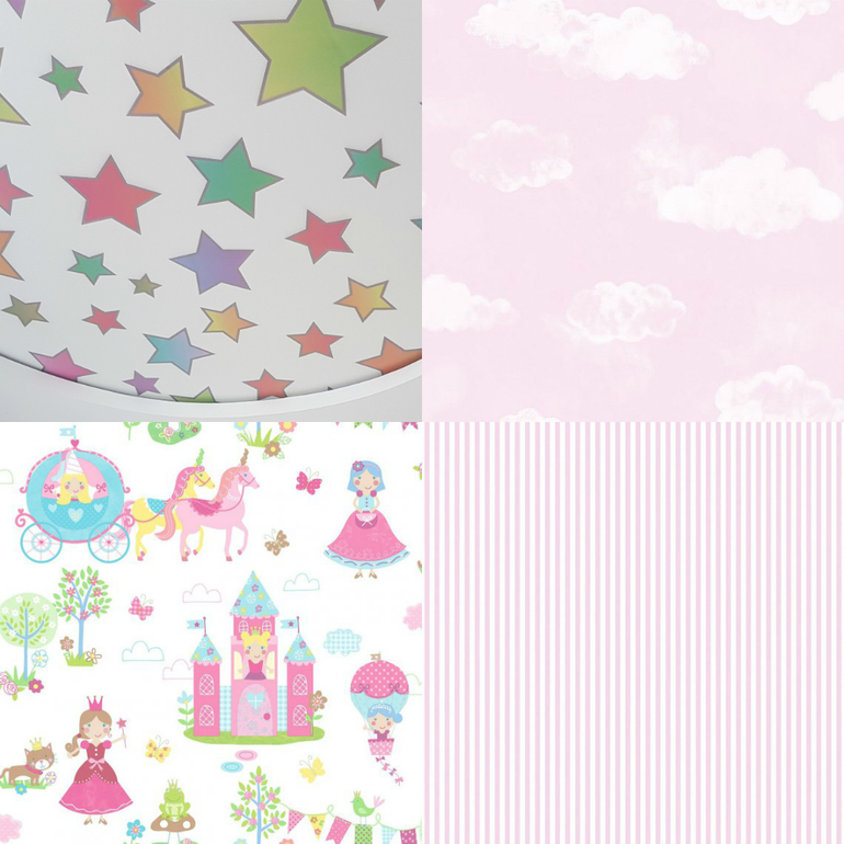Из имеющегося.. пошли навстречу дочке и исполнили ее потолочную мечту) Дочь в восторге, я рада что она рада, но к чисто белому потолку было бы конечно проще подобрать обои)) Ладно, что есть то есть, прошу не критиковать.. *по кругу внутри встроена светодиодная подсветка разноцветная, тоже развлечение для ребенка:)*