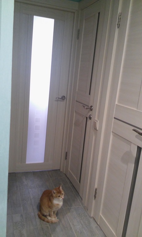 Коридор... Новые двери... Гипсовый кирпич...