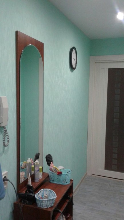 Зеркало и тумбочка под ним остались как были. Хотели купить зеркало в белой раме и белый комод, но это в будущем.