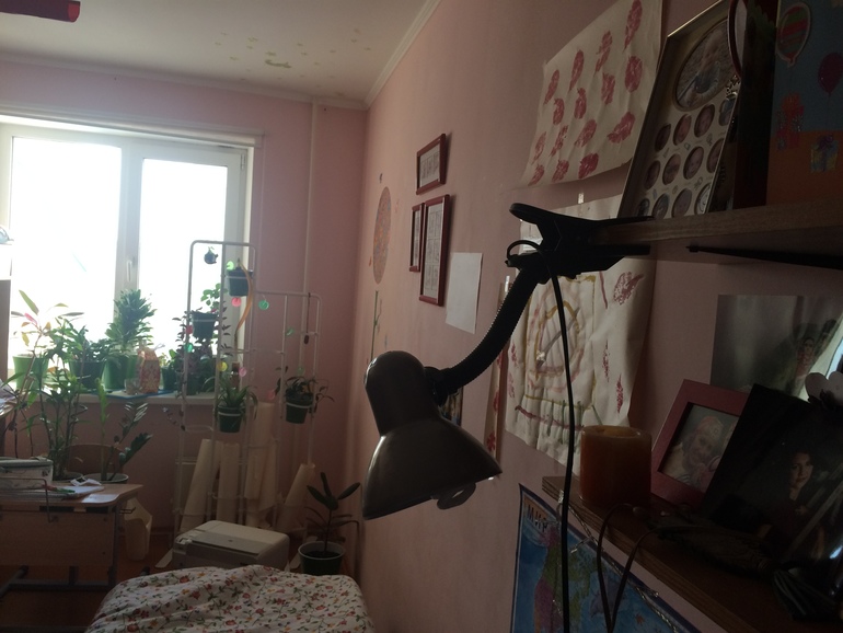 У меня сейчас пустая комната: кровать двуспальная, шкаф и комод. Только спим в этой комнате. Было бы сыну 5- две кровати. Горшки на полу много места визуально занимают, и полки.. у нас книги в другой большой комнате. Считаю, хотите кислорода, все выносите из комнаты