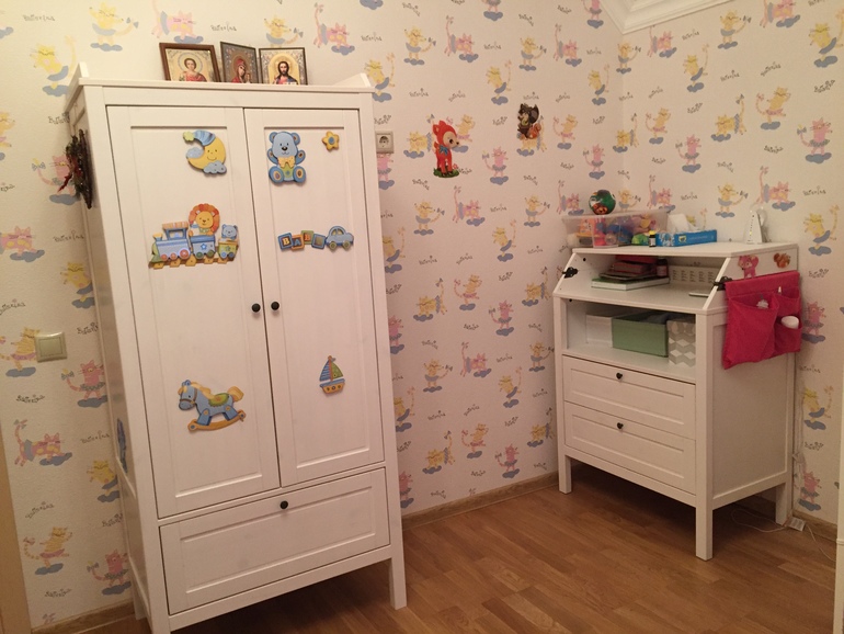 В какой-то момент было так https://www.babyblog.ru/user/id835596/150373 . Теперь вместо кровати - диван, стол большой слева от окна. Шкаф у нас вообще огромный: угловой Пакс, а после него ещё метровый Пакс. Отдельные 9м - это совсем не плохо)
