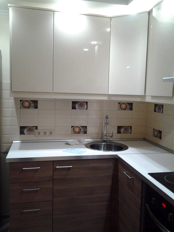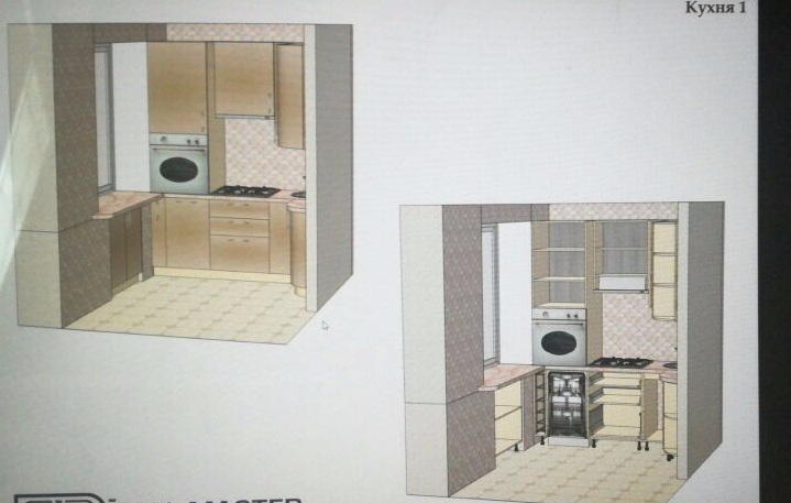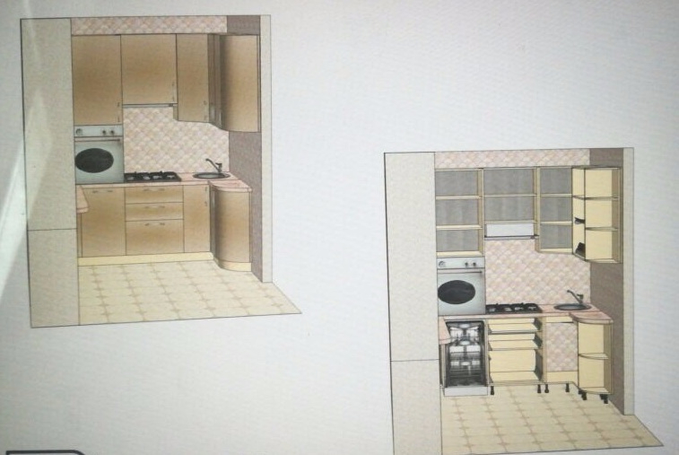 Обратились к знакомому, который занимается ремонтом. Показала ему картинку желаемой кухни. А он говорит, что если раковину установить справа, то места совсем не будет. я же хочу продлить столешницу прям до угла стены, чуть скосив ее. Мне кажется, что кухня на картинке и моя кухня очень похожи и не вижу причины, почему нельзя это воплотить в жизнь.. Стиралку мы уберем в ванну. Холодильник уедет в коридор.
