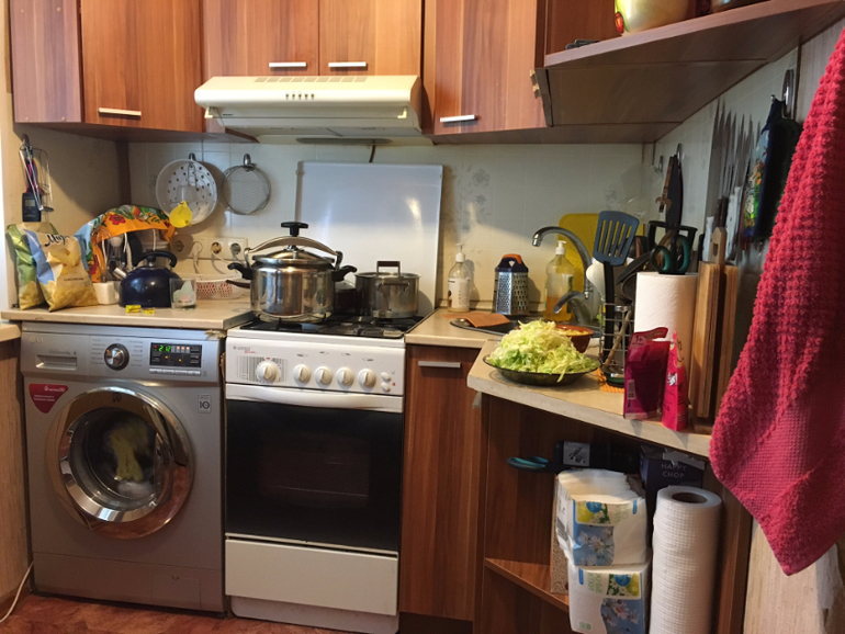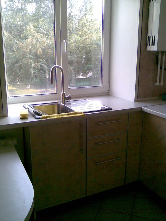 я понимаю, что справа у меня не будет достаточной длины столешницы, т.к. там у нас угол, за которым ванная комната. Но я хочу раковину перенести именно на стену справа, т.к в углу я уже замучилась мыть посуду.