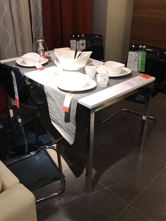 У нас чуть меньше, смогу вечером скинуть фото и сказать. Я фанат икеи, но стол нам был этот большим. Стулья и ингольф для взрослых и детские как барные, в одном стиле с ингольф.