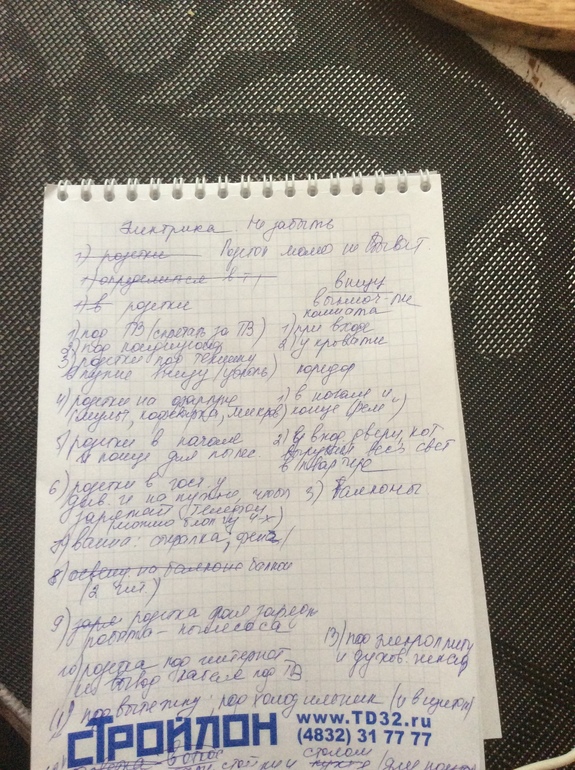 Много вам нужного написали. Считаю, что обязательно сначала продумать расстановку мебели, чтобы не лазать за диван или комод за розеткой. Подумайте, где вы сушите волосы, гладите, пользуетесь компьютером, да даже куда ёлку будете ставить)) у нас оказалось, что по одной стене нет розеток! А туда решили ёлку поставить))