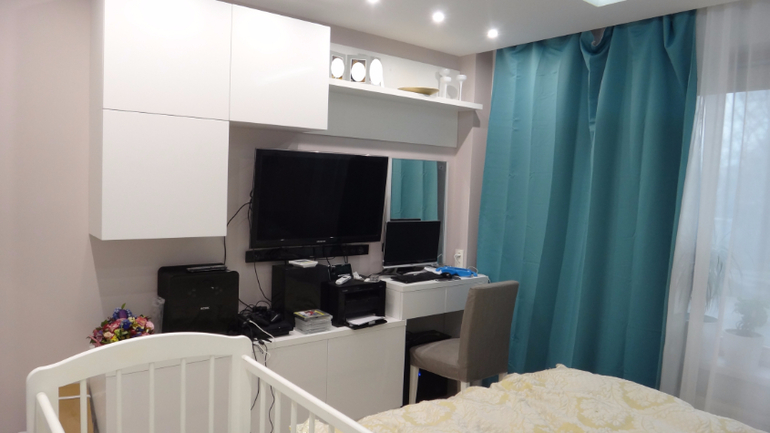 Думаю что покрывало нужно белое (если хочется с рисунком или принтом крупным), можно покрывало белое, а окантовка порывала в цвет надголовника. Подушки красивые что на картинках и вроде к портьерам подходят(7). И мне почему то режет глаз телевизор и все прилагающие, я бы заменила на белый тел, а остальное спрятать все. В общем все неплохо, немного недоработано