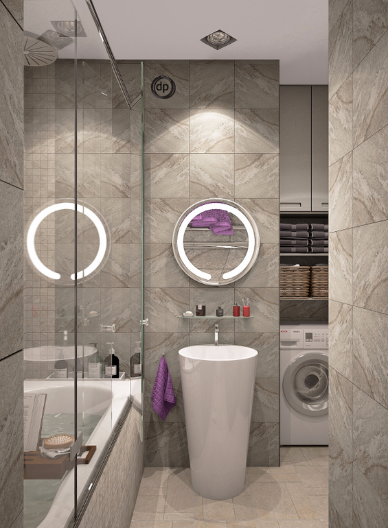 В ванной я использовала плитку, на которой в итоге остановились Заказчики. Даже не захотелось его чем-то разбавлять. Простые, натуральные тона, сделали свое дело! Интерьер получился очень расслабляющим и не давящим, а самое главное практичным. Это помещение я дорабатывала уже самостоятельно, не работая над проектом:
