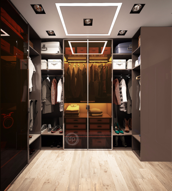 Последнее помещение, над которым мне так же пришлось поработать самостоятельно, оказалась гардеробная. Изначально, я хотела сделать ее совсем иначе, полностью изменив как начинку, так и расположение, но решила не отходить так сильно от проекта и отталкиваться от полученных в самом начале пожеланий и информации: